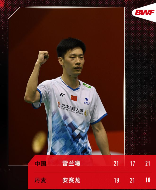 首局比赛,雷兰曦以21-19险胜。但安赛龙无愧是两届奥运会冠军,他在第2局迅速调整状态,以21-17扳回一局。决胜局,双方展开激烈争夺。雷兰曦开局便打得十分出色,一度11-5领先安赛龙,尽管安赛龙随后不断将分差缩小,但雷兰曦还是顶住压力,以21-16拿下决胜局。